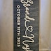DIMENSIONS AND MATERIAL: This Plywood-made wedding sign is in size 15 X 6 inches and 3/8 thickness. It has 5 different wood colors to choose from; Black, Mahogany, Georgian Cherry, Java, and Walnut. Our designs are laser engraved directly into the wood and it has a sawtooth hanger behind it.