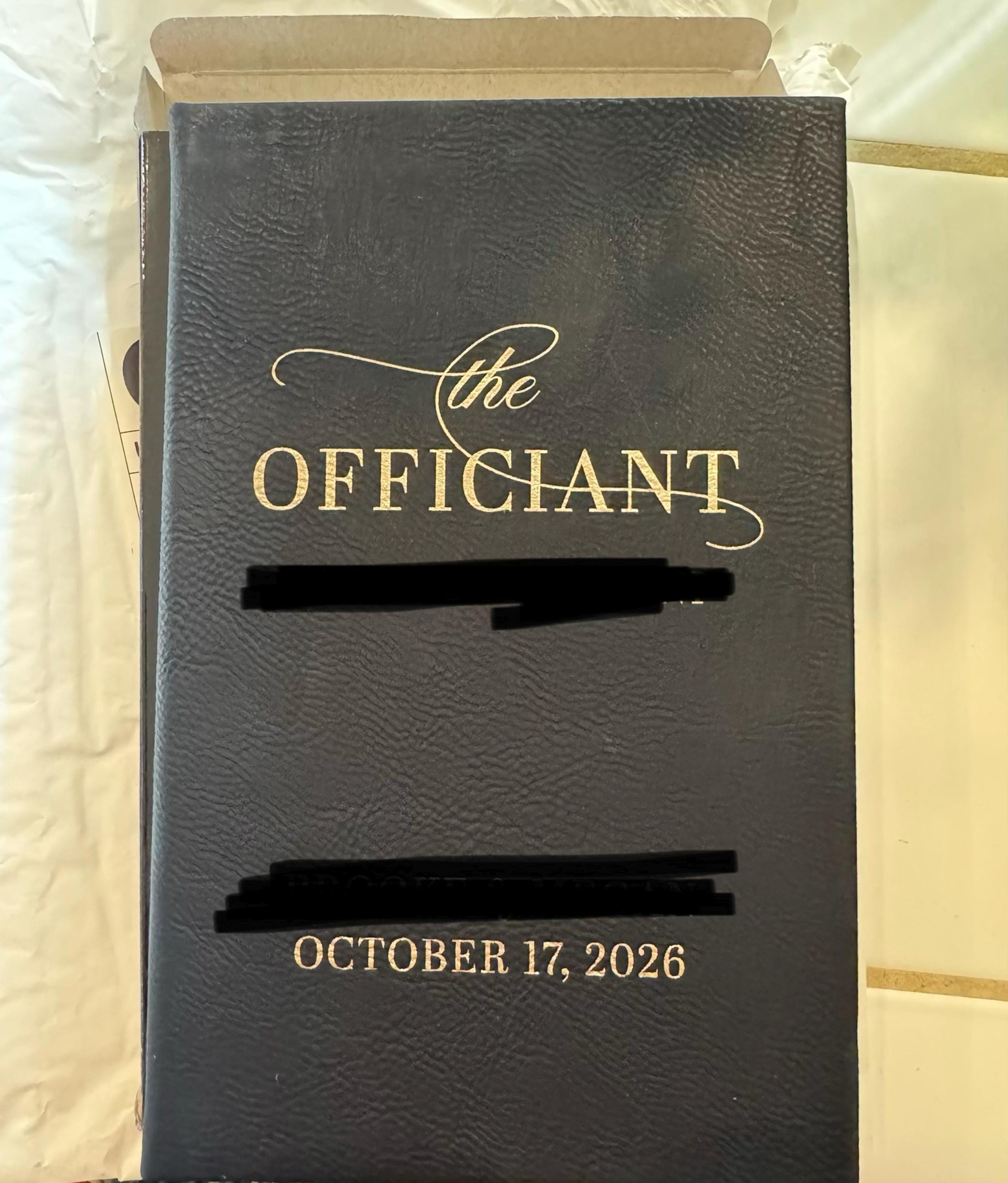 Personalized Officiant Leather Journal – Custom Wedding Ceremony Book, Gift for Wedding Officiant, Engraved Name & Couple Date, Keepsake Notebook